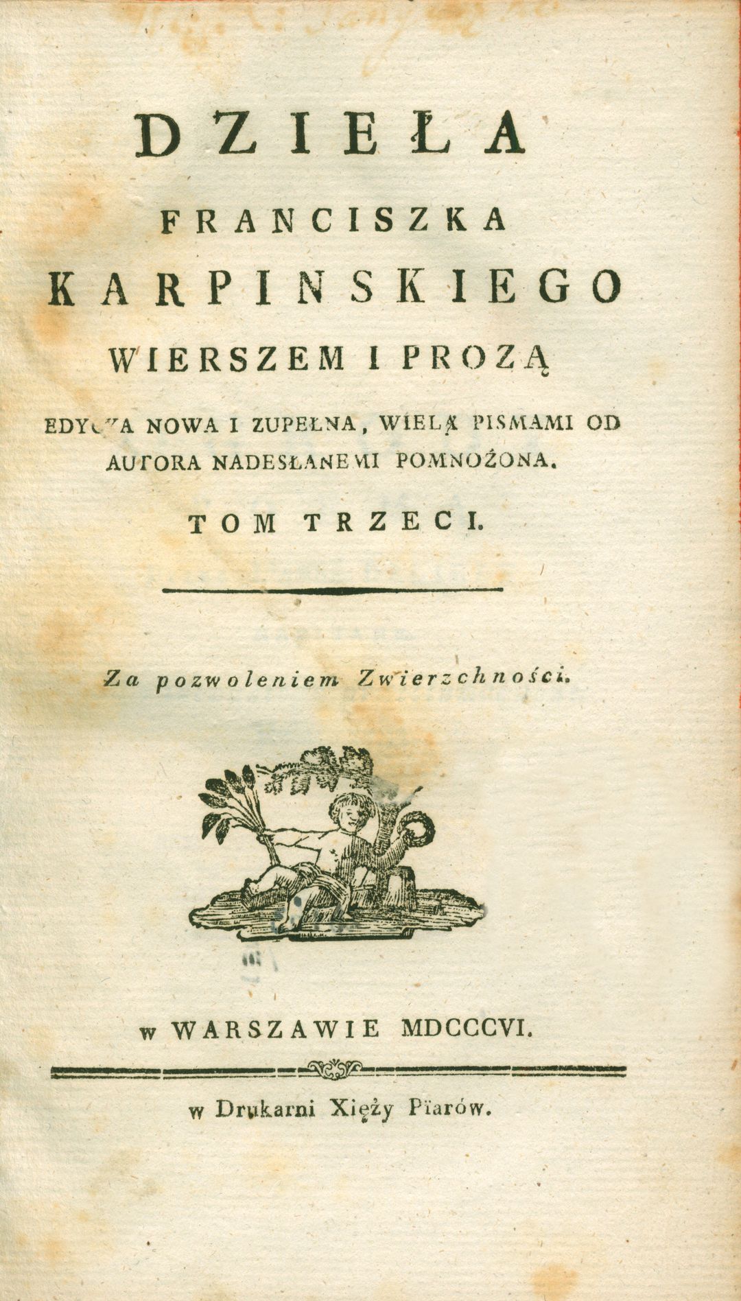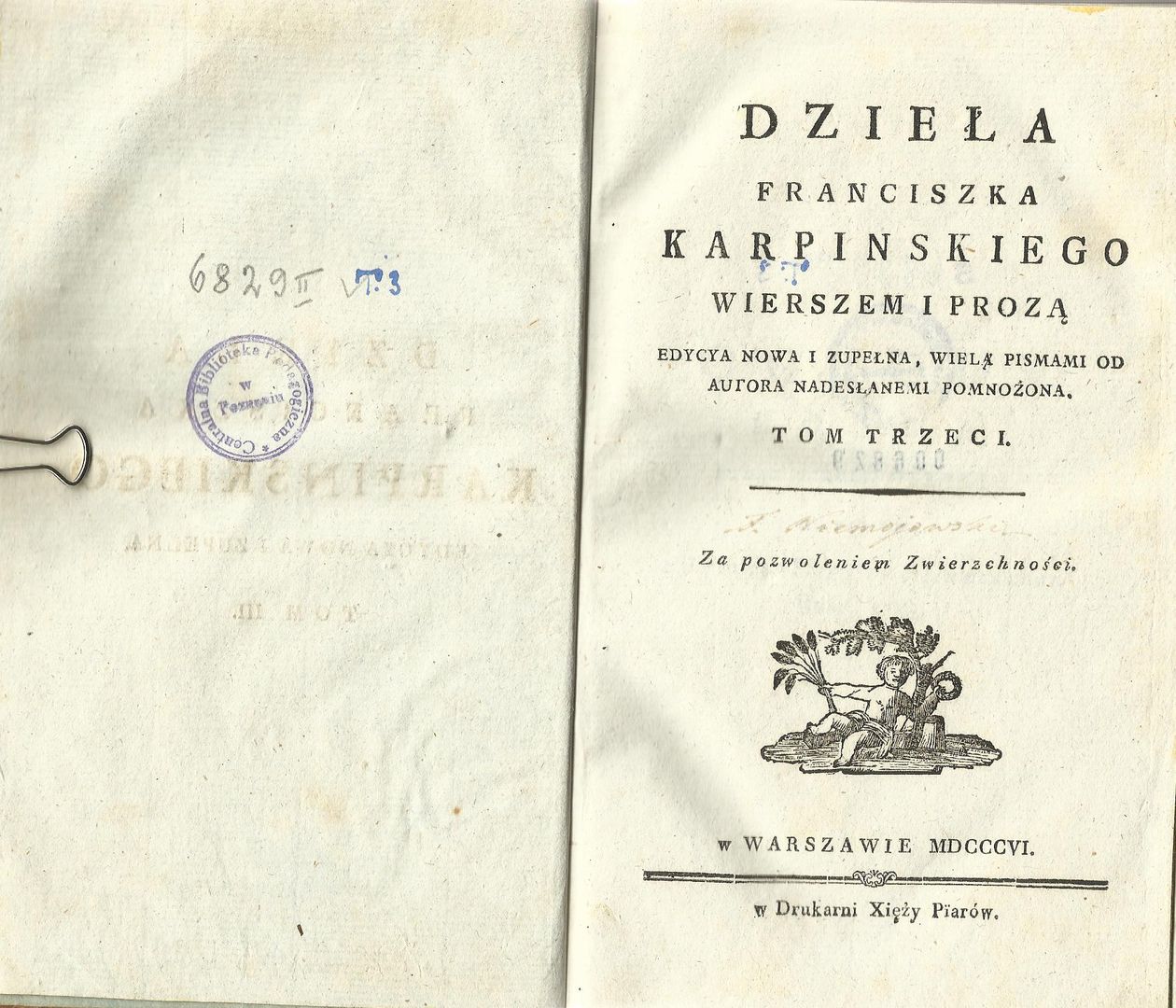 | Wydawcy: | u W. B. Korna (1826) w Drukarni Xięży Piarów (1806) Drukarnia Xięży Piarów (1806) Drukarnia Pijarów Franciszek Ksawery Dmochowski |