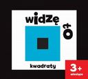 Kilka stron z kolorowymi kwadratami. Dziecko zainteresowane kształtami.