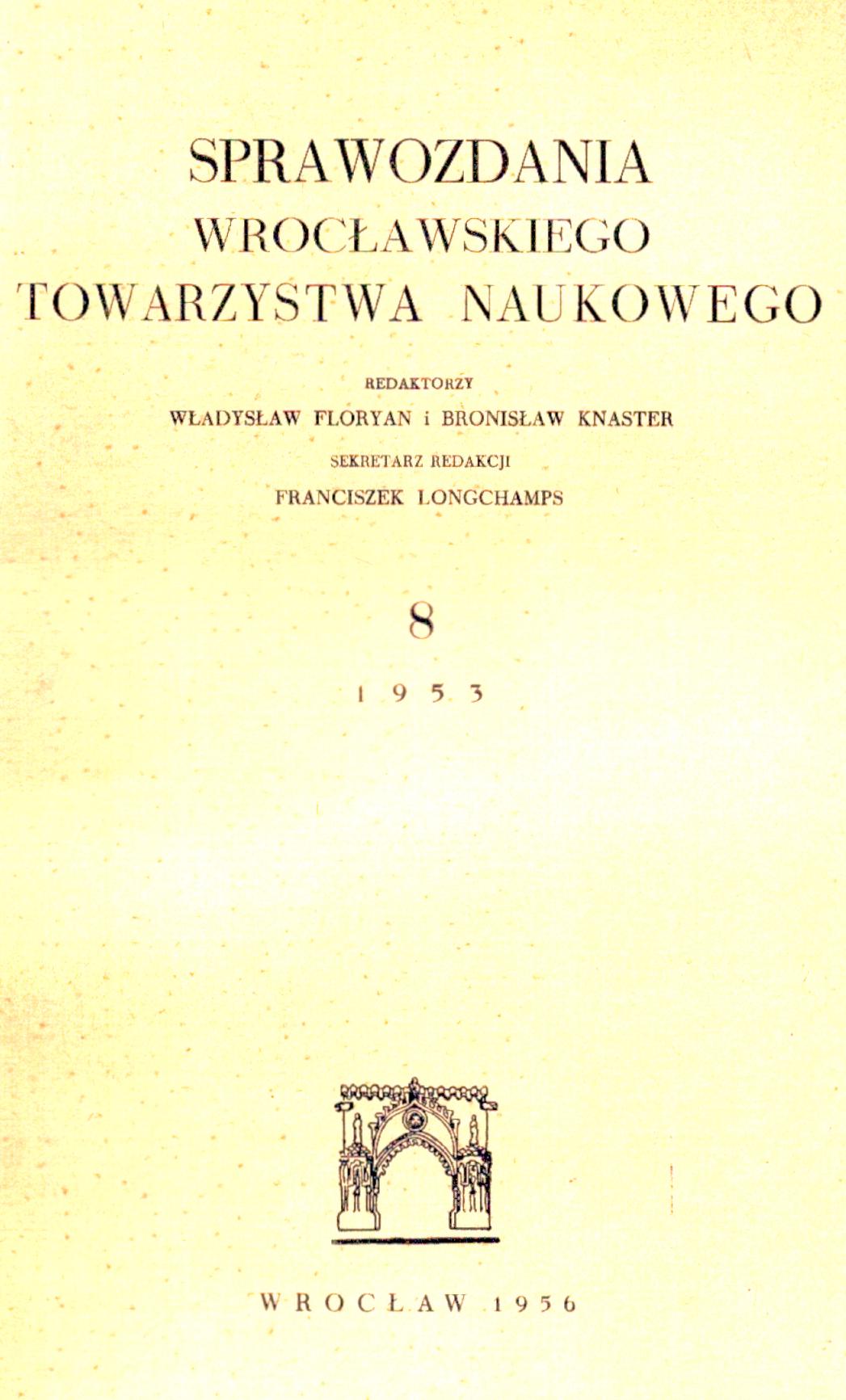 | Inne tytuły: | Sprawozdania Wrocławskiego Towarzystwa Naukowego R. 8/1953 |