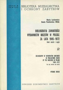 | Inne tytuły: | druki zwarte i ciągłe Bibliography of information contained in publications issued by the museums in Poland 1945-1972 |
