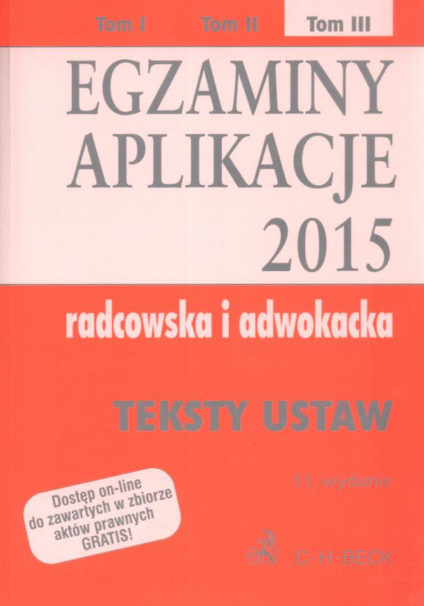 | Inne tytuły: | Teksty Ustaw Becka Egzaminy, aplikacje 2015 - radcowska i adwokacka |