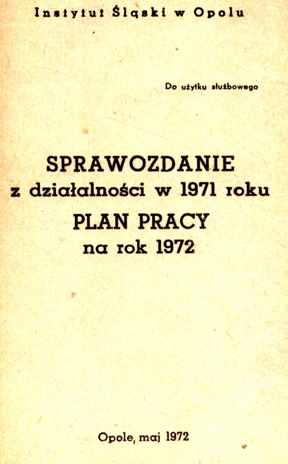 Sprawozdanie z działalności w 1971 roku, plan pracy na rok 1972