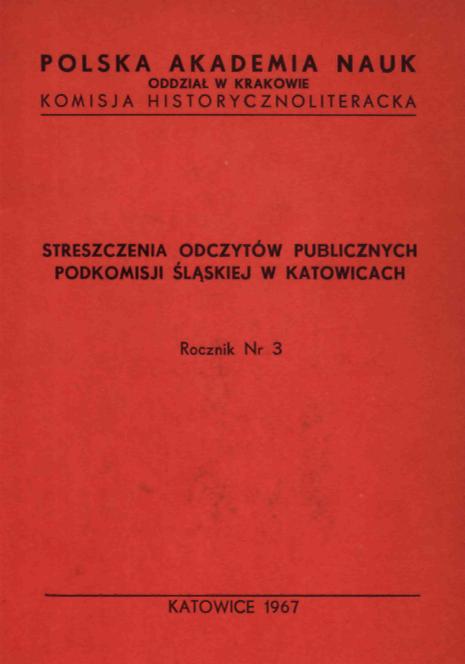 Streszczenia odczytów publicznych podkomisji śląskiej w Katowicach