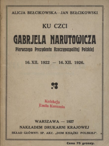 | Inne tytuły: | 16.XII.1922 - 16.XII.1926 Gabrjer Narutowicz, jego życie i czyny 1865-1922 |