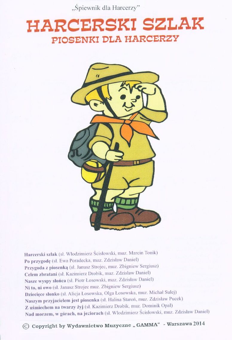 | Inne tytuły: | piosenki dla harcerzy Celem zbratani Dziecięce słonko Nad morzem, w górach, na jeziorach Nasze wyspy słońca Naszym przyjacielem jest piosenka Ni to, ni owo Po przygodę Przygoda z piosenką Z uśmiechem na twarzy żyj Śpiewnik dla Harcerzy |