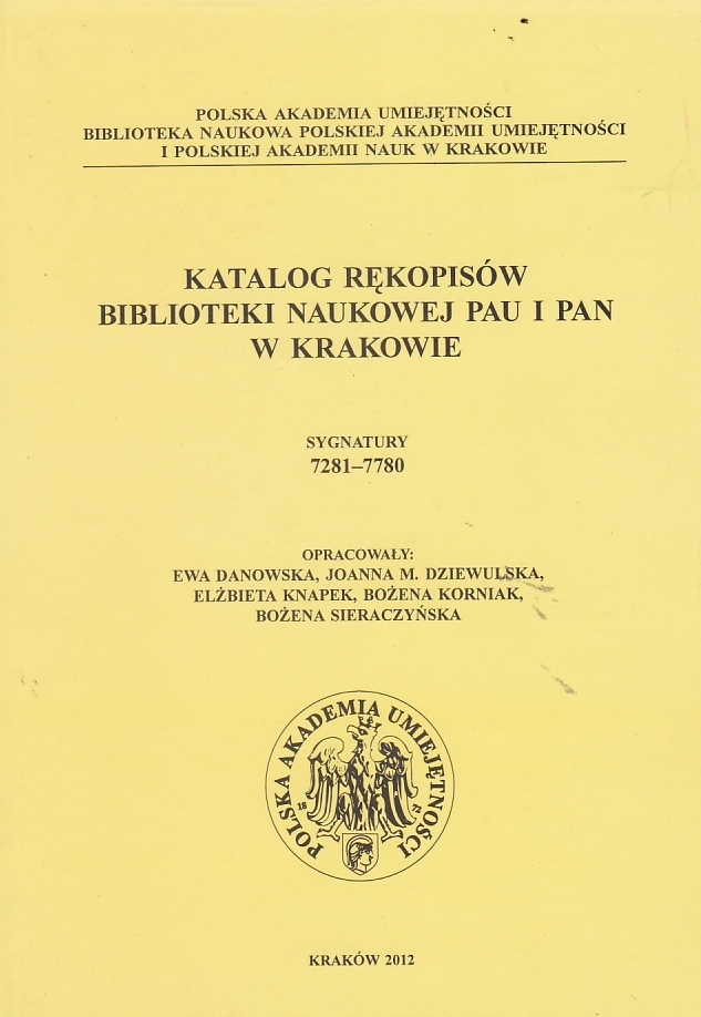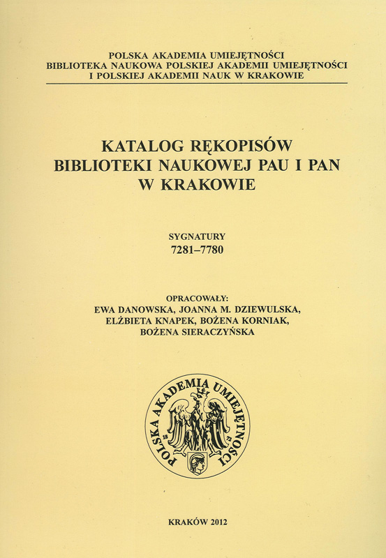 Katalog rękopisów Biblioteki Naukowej PAU i PAN w Krakowie: