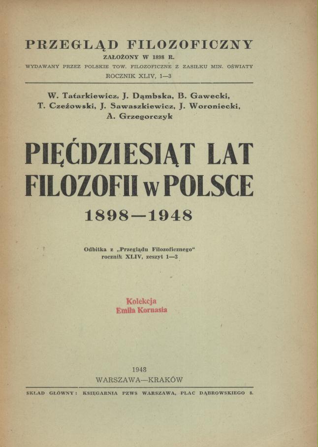 Pięćdziesiąt lat filozofii w Polsce: