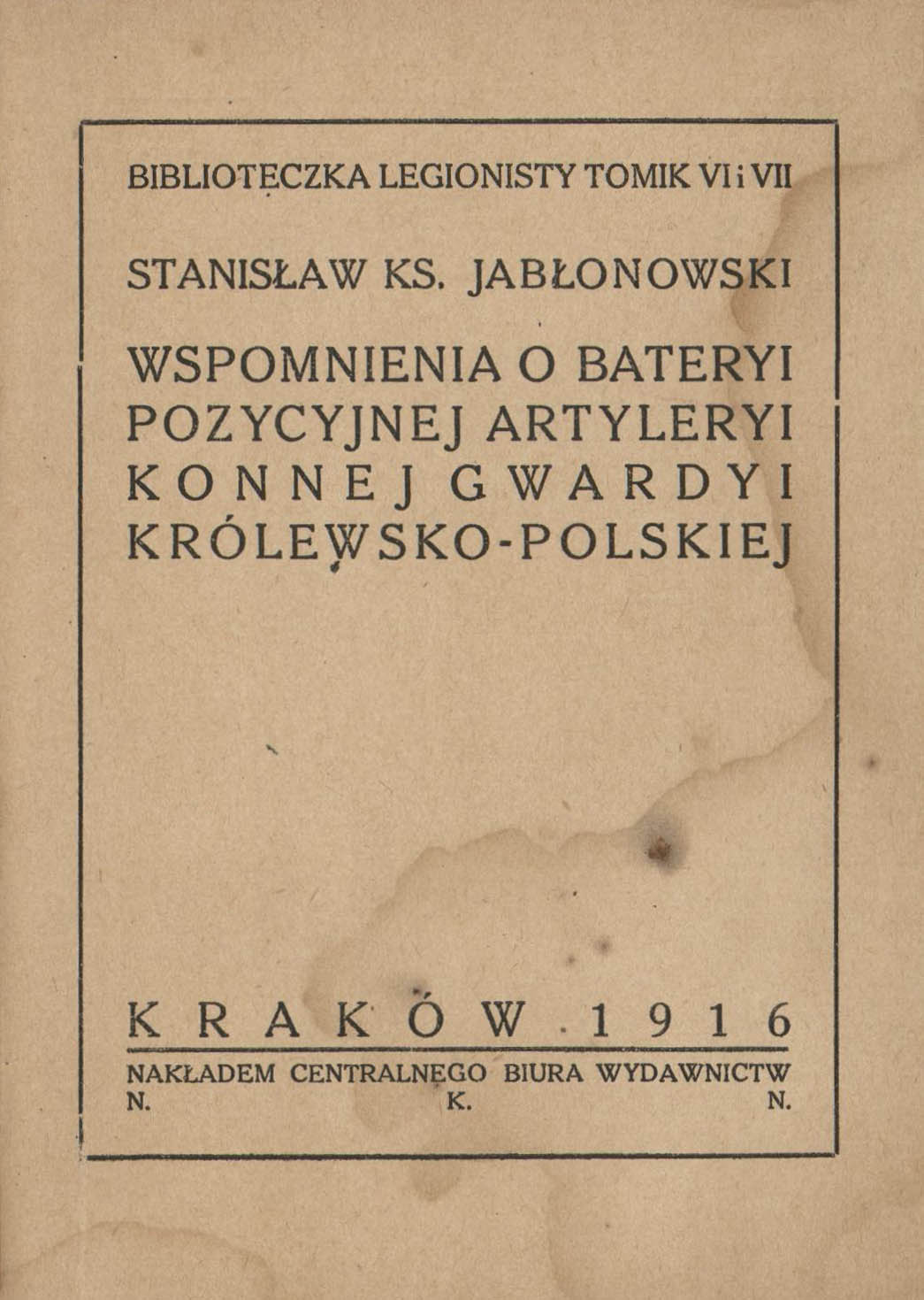 | Inne tytuły: | Wspomnienia o baterii pozycyjnej artylerii konnej gwardii królewsko-polskiej |
