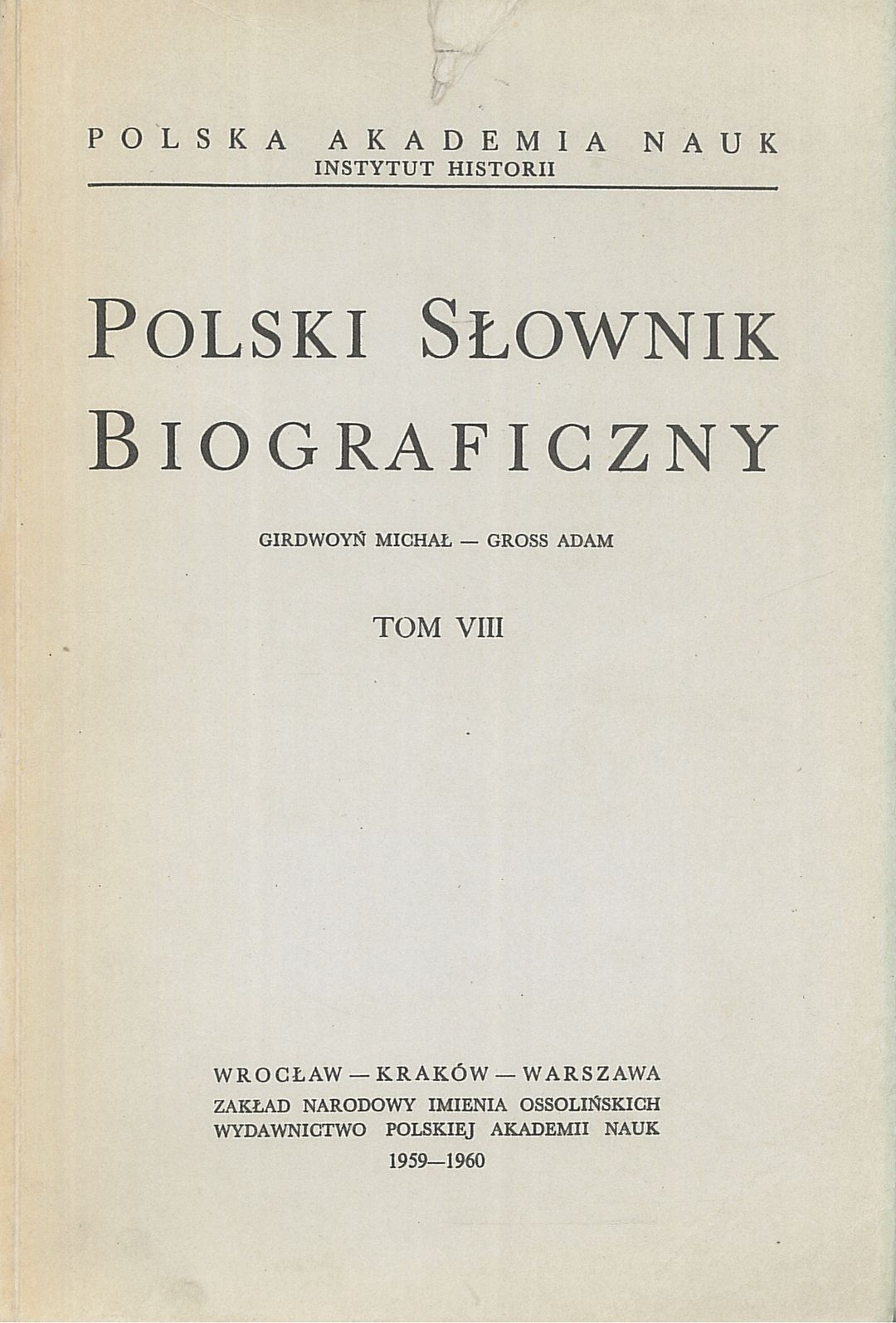 | Inne tytuły: | Polski słownik biograficzny 8, |