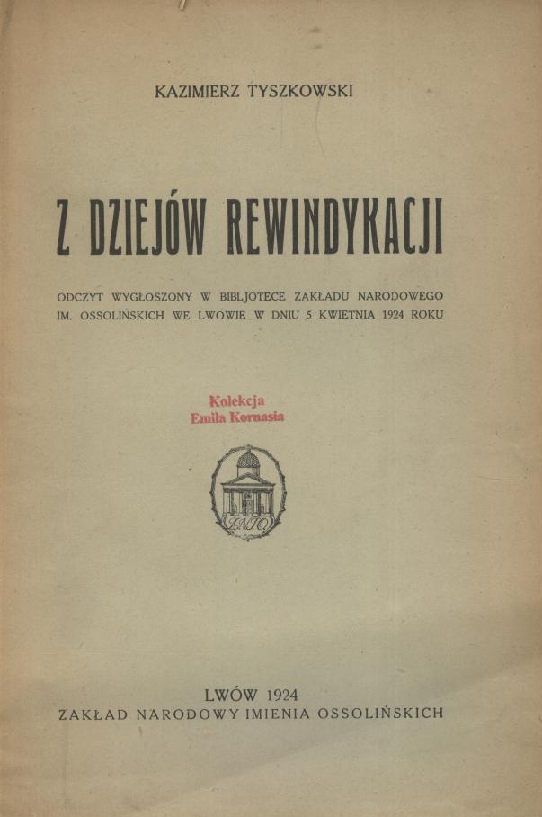 odczyt wygłoszony w Bibljotece Zakładu Narodowego im. Ossolińskich we Lwowie w dniu 5 kwietnia 1924 roku