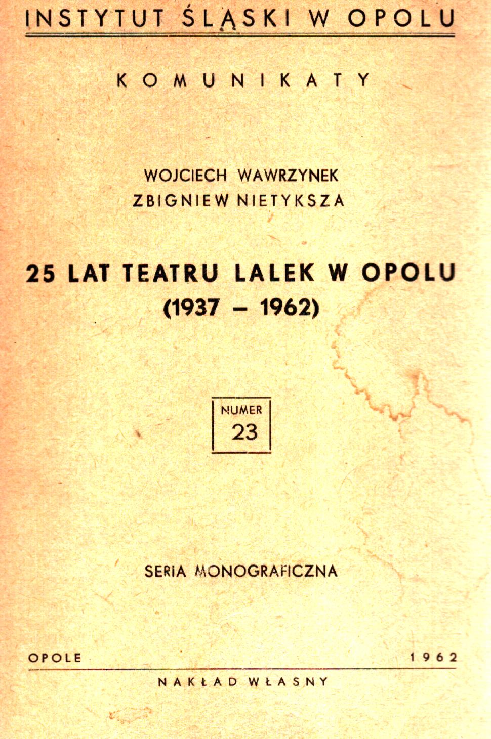 | Inne tytuły: | Dwadzieścia pięć lat Teatru Lalek w Opolu 1937-1962 |