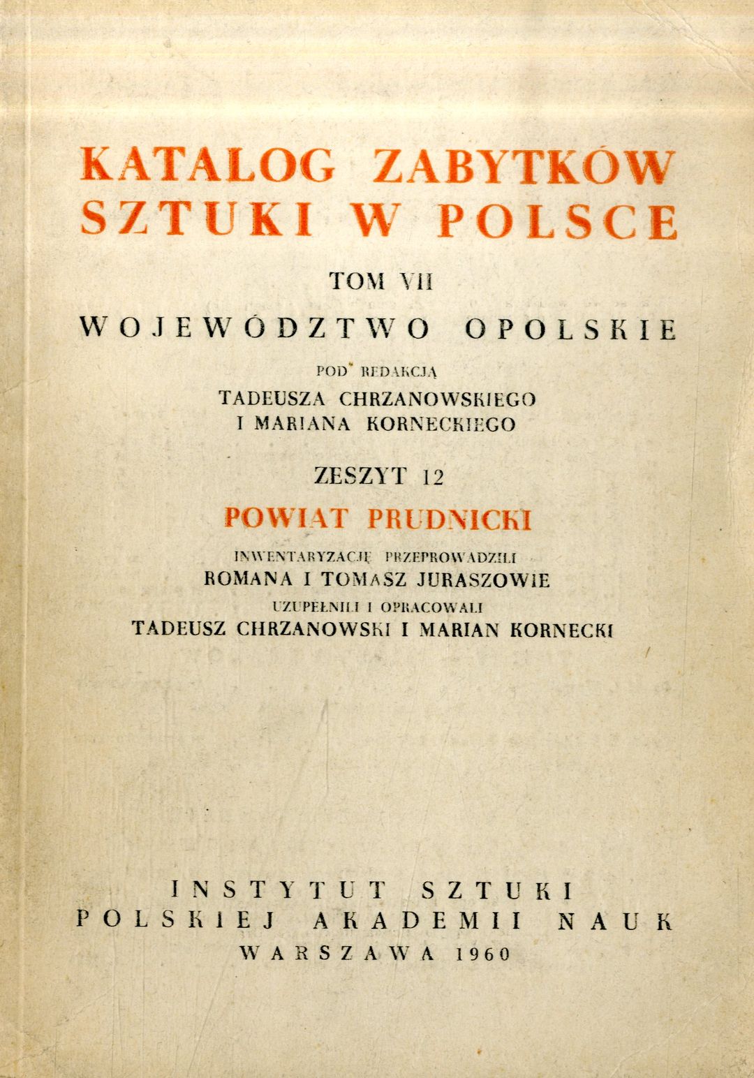 | Inne tytuły: | Powiat prudnicki Katalog zabytków sztuki w Polsce T. 7. |