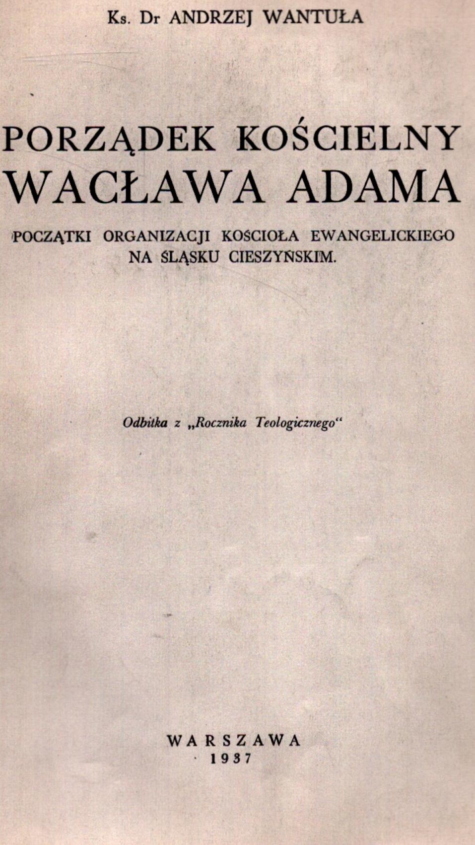 Porządek kościelny Wacława Adama: