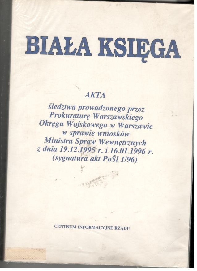 akta śledztwa prowadzonego przez Prokuraturę Warszawskiego Okręgu Wojskowego w Warszawie w sprawie wniosków Ministra Spraw Wewnętrznych z dnia 19.12.1995 r. i 16.01.1996 r. (sygnatura akt PoŚl 1/96)