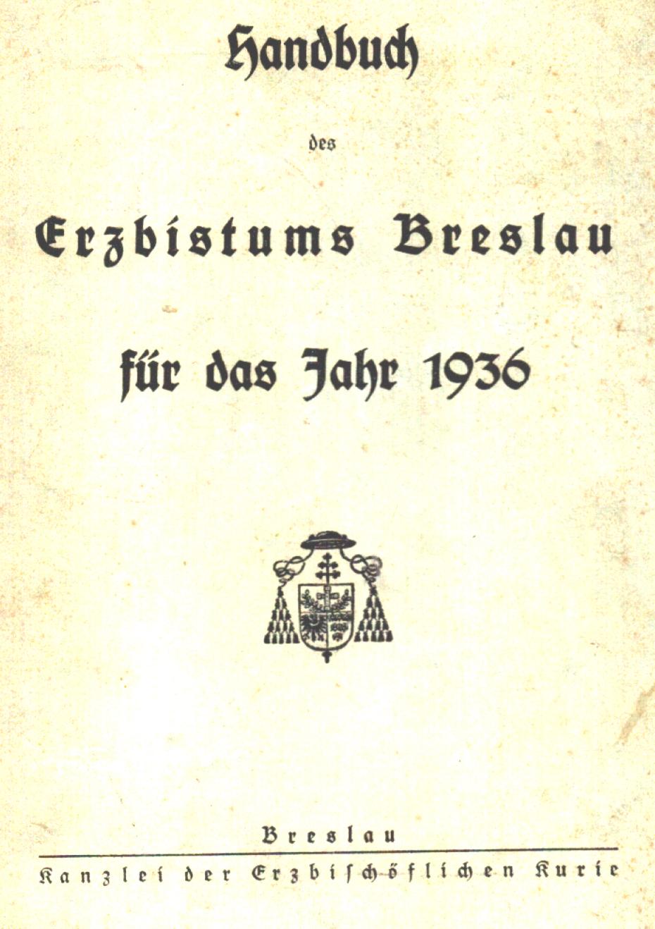 | Inne tytuły: | Handbuch des Erzbistums Breslau für das ... J. 1936 |