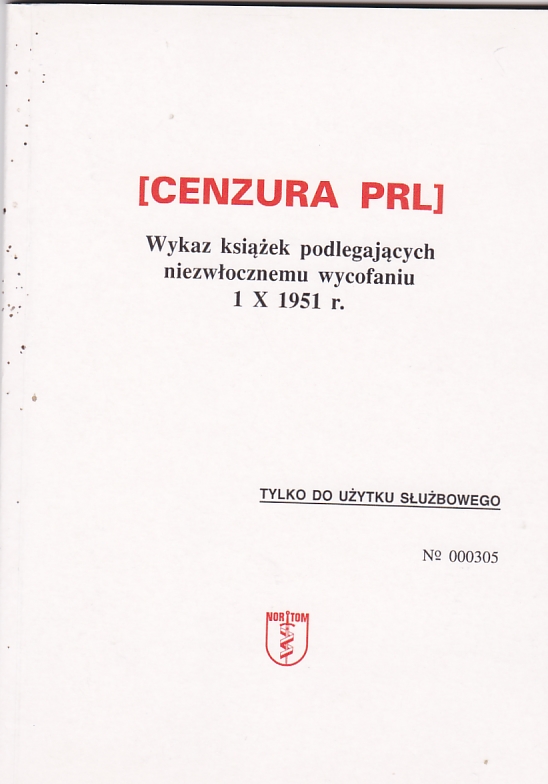 wykaz książek podlegających niezwłocznemu wycofaniu 1 X 1951 r
