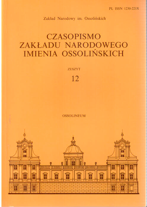 | Instytucja sprawcza: | Zakład Narodowy im. Ossolińskich |