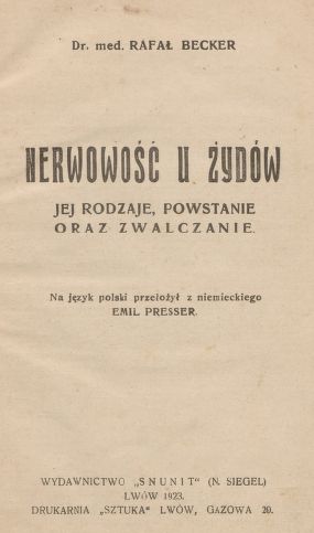 | Tytuł oryginalny: | Jüdische Nervosität, ihre Art, Enstehung und Bekämpfung |