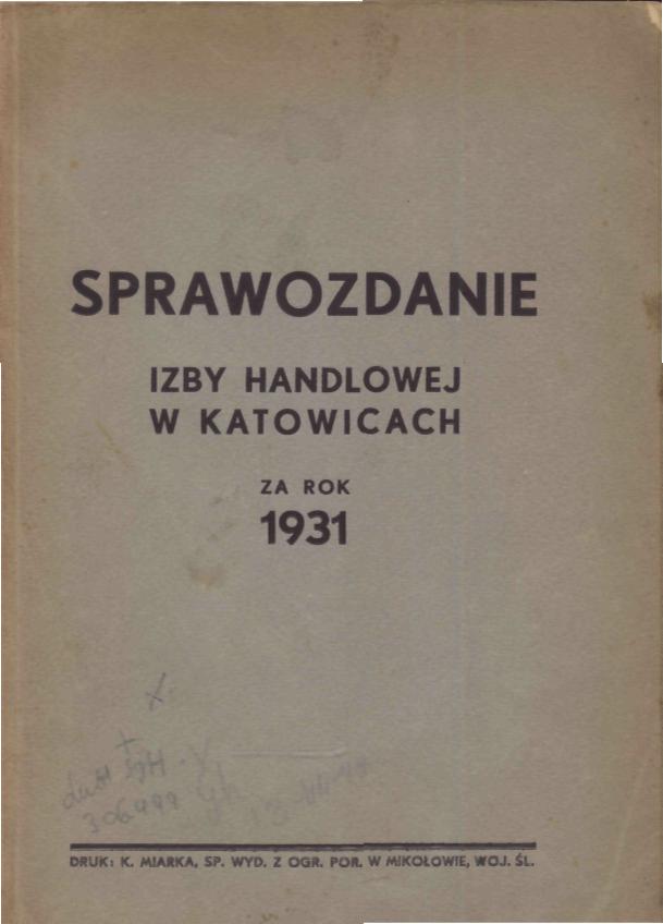 Sprawozdanie Izby Handlowej w Katowicach za rok 1931