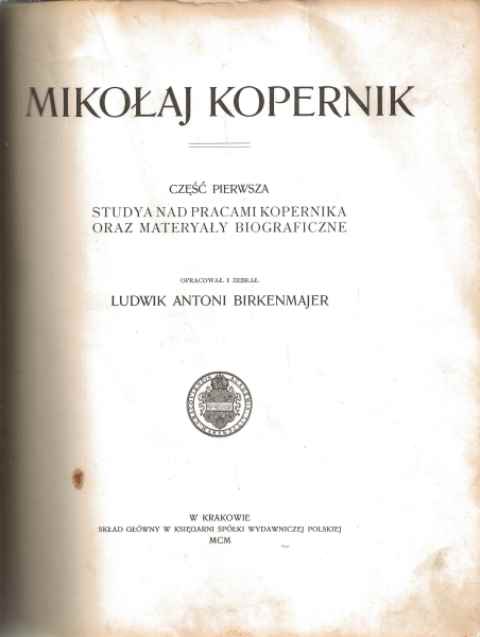 Mikołaj Kopernik: Studya nad pracami Kopernika oraz materyały biograficzne