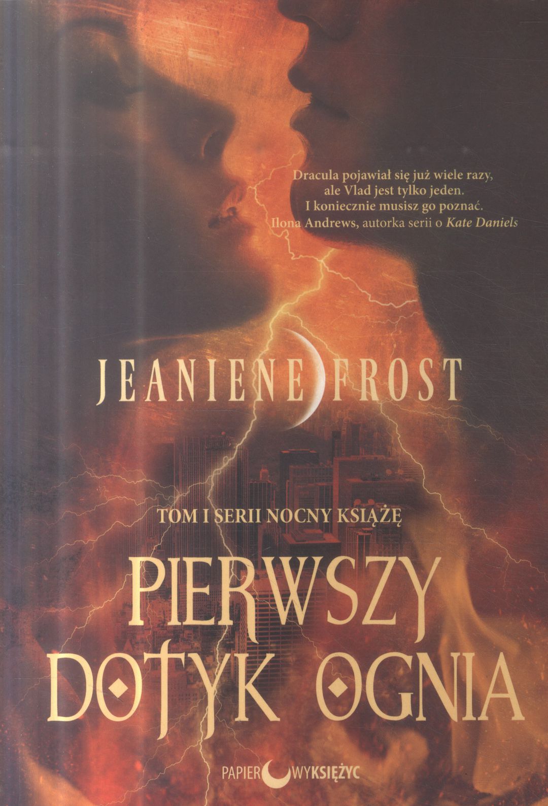 "Pierwszy dotyk ognia" to długo wyczekiwany pierwszy tom serii `Nocny książę`, autorstwa Jeaniene Frost, amerykańskiej mistrzyni urban fantasy. Nocny Książę to seria osadzona w dobrze znanym polskim czytelnikom świecie Nocnej Łowczyni, opowiadająca o Vladzie i nowej postaci - Leili.Kiedy tragiczny wypadek pokrył jej ciało bliznami i zniszczył jej marzenia, Leila nie wyobrażała sobie nawet, że najgorsze jeszcze ją czeka. Zyskała jednak przerażającą moc, która pozwala jej przewodzić elektryczność i w jednej chwili poznać najczarniejsze tajemnice każdej osoby, jakiej dotknie. Leila jest skazana na samotne życie. Lecz wtedy zostaje porwana przez nocne stwory i w potrzebie musi telepatycznie wezwać najbardziej niesławnego wampira na świecie.Vlad Tepesh zainspirował najwspanialszą wampiryczną legendę - ale pod żadnym pozorem nie należy nazywać go "Dracula". Zdolność panowania nad ogniem sprawia, że Vlad jest postrachem nawet wśród wampirów, lecz jego wrogowie znaleźli przeciw niemu nową broń: piękną śmiertelniczkę, której potęga równa jest jego własnej. Kiedy się spotykają, rozpala się między nimi namiętność, która może pochłonąć ich oboje. Będą musieli posunąć się do granic, by powstrzymać nieprzyjaciela, który zrobi wszystko, by strawiły ich płomienie.
