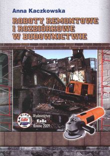 Spis treści: 2. Roboty remontowe w świetle prawa budowlanego; 3. Zagadnienia związane z naprawą i remontem budynku, 3.1. Określenie stopnia zużycia elementów budowlanych, 3.2. Wzmacnianie fundamentów, 3.3. Naprawa i wzmacnianie izolacji przeciwwodnych, 3.4. Naprawa konstrukcji ściennych, 3.4.1. Ściany murowane, 3.4.2. Ściany drewniane 53, 3.5. Naprawa i ochrona konstrukcji betonowych i żelbetowych, 3.6. Wzmacnianie stropów, 3.7. Renowacja tynków i okładzin ściennych, 3.8. Naprawa więźby i pokryć dachowych, 3.8.1. Naprawa drewnianej więźby dachu 3.8.2. Remont stropodachów, 3.8.3. Naprawa pokryć dachowych, 3.9. Odgrzybianie konstrukcji drewnianych, 3.10. Zasady bhp podczas robót remontowych; 4. Roboty rozbiórkowe w świetle przepisów prawa budowlanego, 4.1. Podstawowe zasady rozbiórki elementów budynku, 4.2. Zasady kolejności w robotach rozbiórkowych, 4.3. Dziennik rozbiórki, 4.4. Wyburzenia budynków 4.4.1. Wyburzanie za pomocą stalowej kuli, 4.4.2. Przewracanie za pomocą stalowej liny, 4.4.3. Wyburzanie budynków metodą mechaniczną, 4.4.4. Wyburzanie materiałami wybuchowymi, 4.4.5. Analiza metod wyburzania, 4.5. Zasady bhp przy wykonywaniu rozbiórek