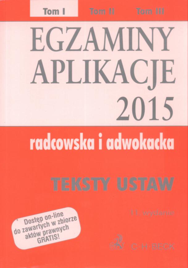 | Inne tytuły: | teksty ustaw i rozporządzeń Egzaminy, aplikacje 2015 - radcowska i adwokacka |