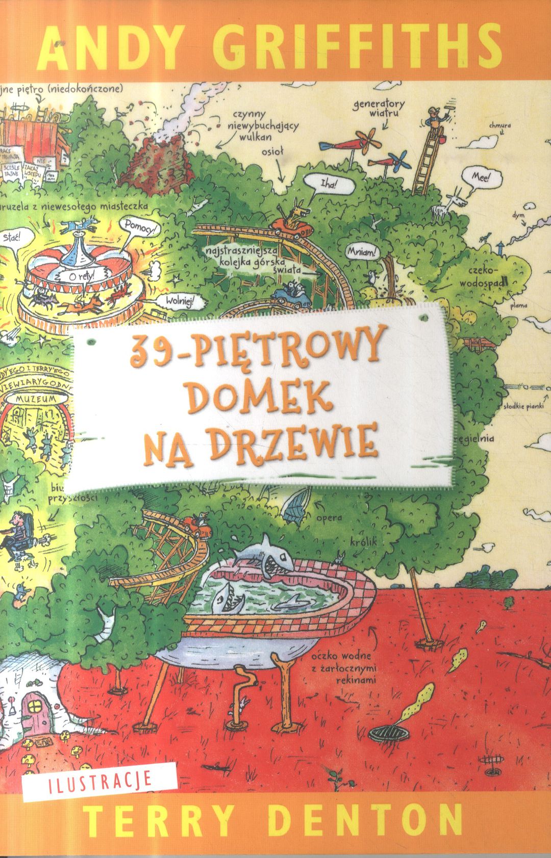 Pierwszy tom najśmieszniejszej serii od czasów "Dziennika cwaniaczka"! Andy i Terry mieszkają w trzynastopiętrowym domku na drzewie. A ten domek jest najfajniejszy na świecie! Znajdziecie tu kręgielnię, oczko wodne pełne rekinów, tajne podziemne laboratorium oraz inteligentny piankomat, który podąża za człowiekiem krok w krok. Naprawdę, życie byłoby piękne, gdyby nie to, że dwaj kumple mają jeden dzień na napisanie nowej książki dla swojego wydawcy, Nochalskiej Księgarni. W dodatku ciągle coś im przeszkadza: latające koty, gigagoryle, milutkie syrenki, potwory morskie udające milutkie syrenki. Domek na drzewie po prostu pęka w szwach od niezapowiedzianych gości! No, na co czekacie? Właźcie!