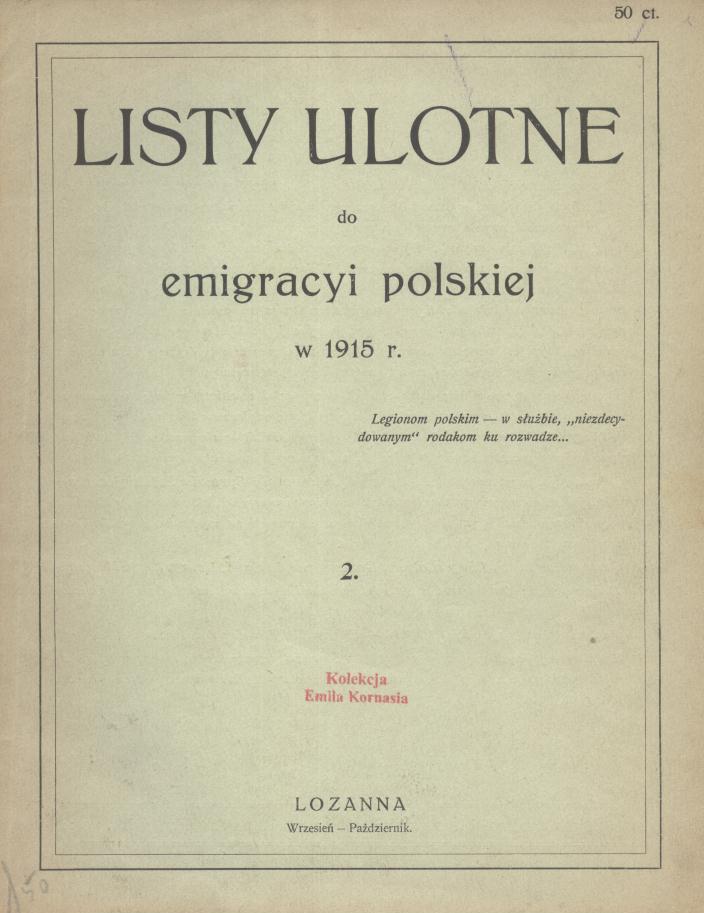 Listy Ulotne do Emigracyi Polskiej w 1915 r.