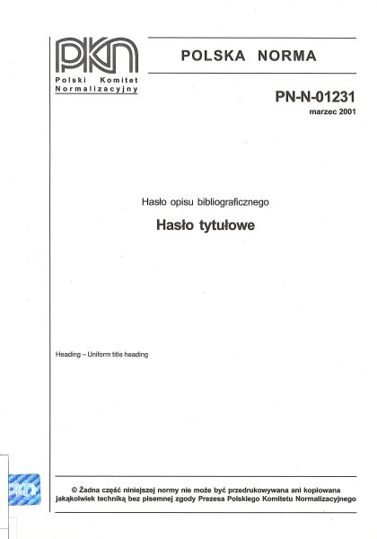 | Inne tytuły: | PN-N-01231 hasło opisu bibliograficznego |