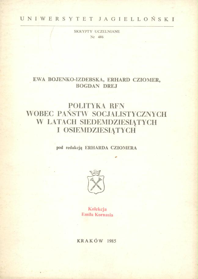 Polityka RFN [Republiki Federalnej Niemiec] wobec państw socjalistycznych w latach siedemdziesiątych i osiemdziesiątych