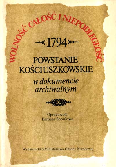 | Inne tytuły: | Powstanie Kościuszkowskie 1794 w dokumencie archiwalnym 1794 wolność, całość i Niepodległość |