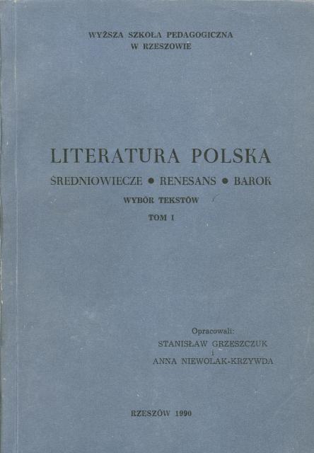 | Inne tytuły: | wybór tekstów średniowiecze - renesans - barok Literatura polska T. 1 |