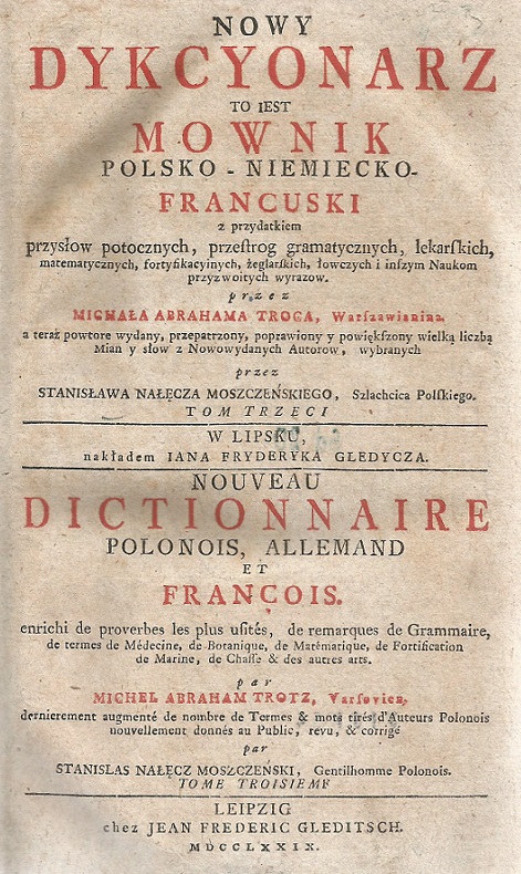 | Inne tytuły: | Nouveau dictionnaire polonois, allemand et françois [...] |