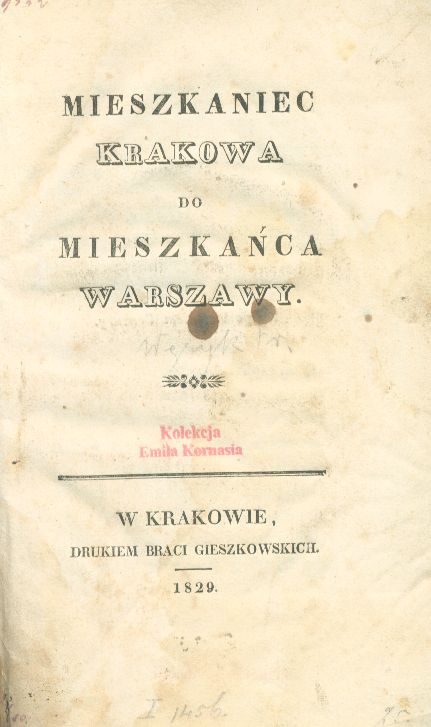 | Wydawcy: | druk. Braci Gieszkowskich (1829) Drukarnia Braci Gieszkowskich |