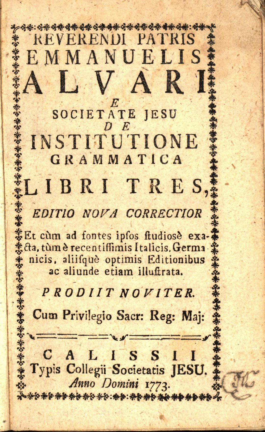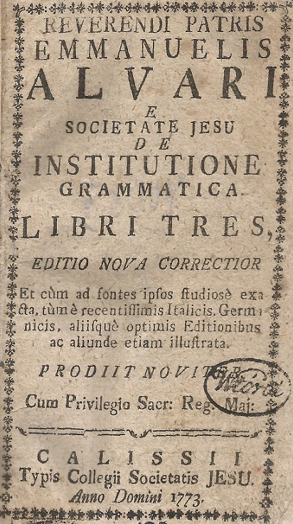 Reverendi patris Emmanuelis Alvari [...] De institutione grammatica libri tres