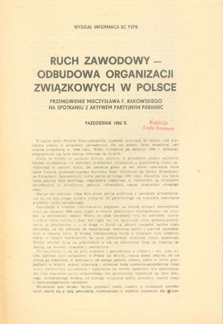 przemówienie Mieczysława F. Rakowskiego na spotkaniu z aktywem partyjnym Pabianic