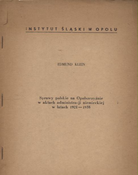 Sprawy polskie na Opolszczyźnie w aktach administracji niemieckiej w latach 1921-1935