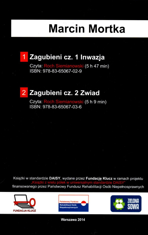 | Wydawcy: | Legimi (2016) Wydawnictwo Zielona Sowa (2012-2016) Fundacja Klucz na Rzecz Edukacji i Upowszechniania Czytelnictwa Osób Niewidomych i Słabowidzących (2014-2015) |