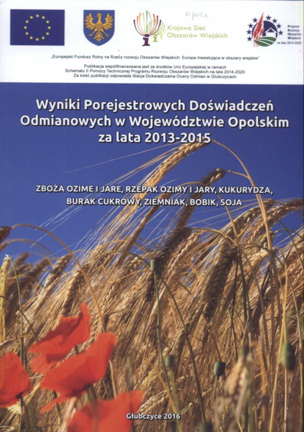 | Inne tytuły: | 2013-2015 zboża ozime i jare, rzepak ozimy i jary, kukurydza, burak cukrowy, ziemniak, bobik, soja |