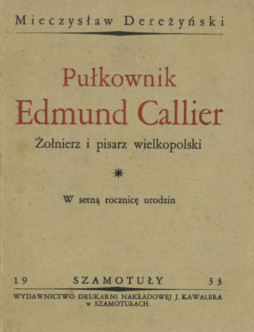 Pułkownik Edmund Callier, żołnierz i pisarz wielkopolski: