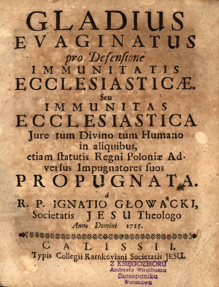 Gladius Evanginatus pro Defensione Immunitatis Ecclesiasticæ Seu Immunitas Ecclesiastica: