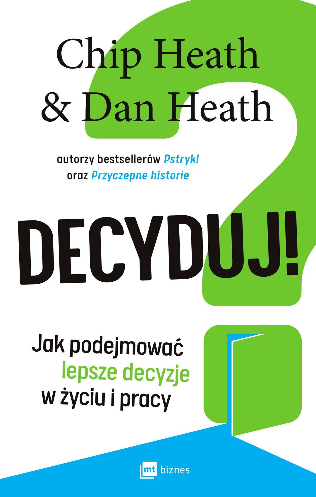 Ich książka Decyduj! zawiera zarówno nieschematyczne strategie, jak i praktyczne narzędzia pozwalające nam lepiej podejmować decyzje. Napisana żywym językiem przez mistrzów storytellingu zabiera nas w podróż przez inspirujące sytuacje – od przykładów katastrofalnych w skutkach decyzji menedżerskich podejmowanych „intuicyjnie i szybko”, aż po rozwiązania trudnych problemów, jakim musimy stawić czoła w życiu rodzinnym.