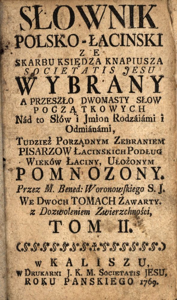 A Przeszło Dwomasty Słow Początkowych Nad to Słów i Jmion Rodzaiami i Odmianami, Tudzież Porządnym Zebraniem Pisarzow Łacinskich Podług Wieków Łaciny, Ułożonym Pomnozony