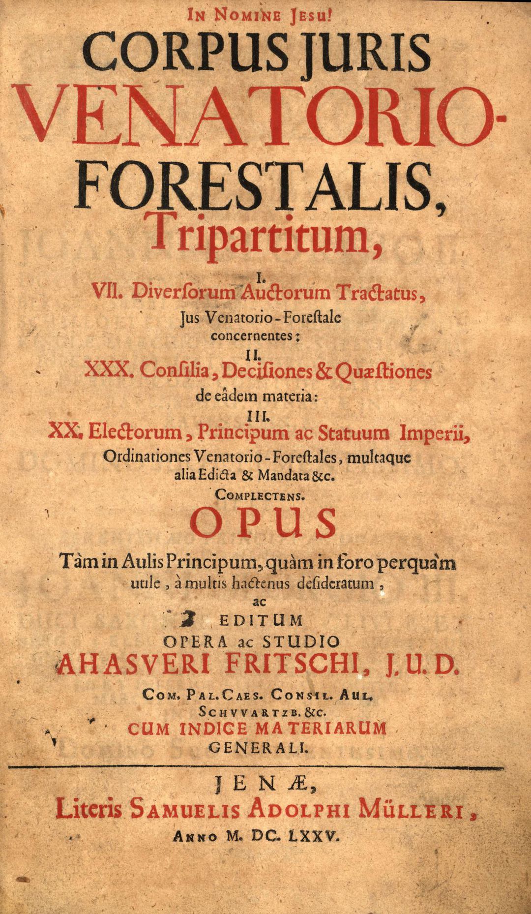 I. VII. Diversorum Auctorum Tractatus, Jus Venatorio-Forestale concernentes: II. XXX. Consilia, Decisiones & Quæstiones de eadem materia: III. XX. Electorum, Principum ac Statuum Imperii, Ordinationes Venatorio-Forestales, multaque alia Edicta & Mandata &c. Complectens