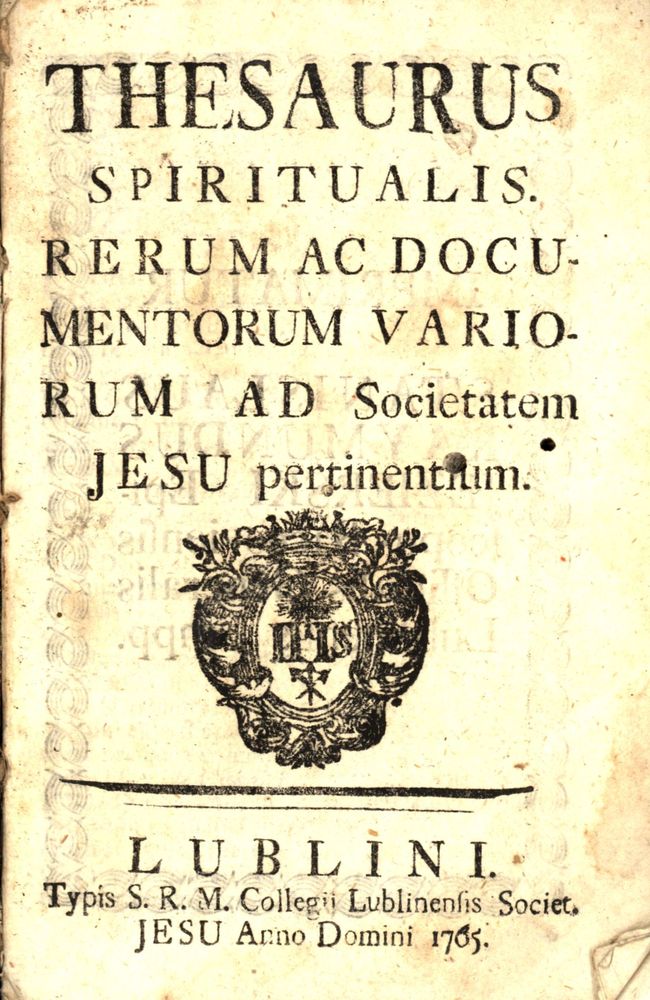 Thesaurus Spiritualis Rerum Ac Documentorum Variorum Ad Societatem Jesu pertinentium
