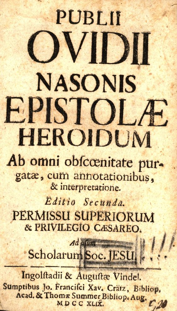 Publii Ovidii Nasonis Epistolae Heroidum Ab omni obscoenitate purgatae, cum annotationibus, & interpretatione. Ad Usum Scholarum Soc. Jesu