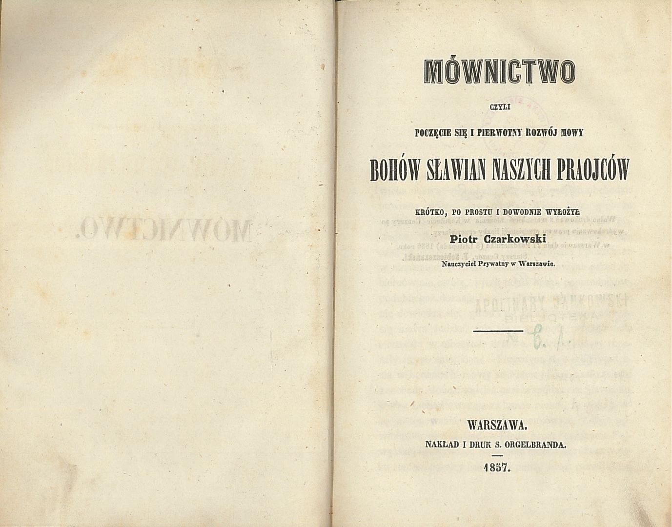 Mównictwo czyli poczęcie się i pierwotny rozwój mowy Bohów Sławian naszych praojców
