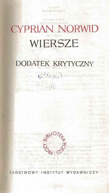 | Serie wydawnicze: | Biblioteka Poezji i Prozy Dzieła zebrane Biblioteka Dzieł Wyborowych Dzieła zebrane (Cyprian Kamil Norwid) |