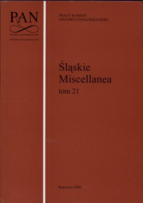 | Inne tytuły: | Śląskie miscellanea T. 21 |